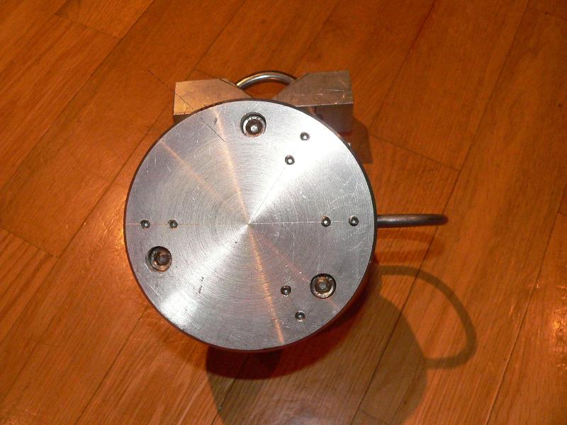 Od góry widać trzy śruby (M6) wkręcone do teflonowych tulejek i osiem wkrętów (M4) do mocowania elementów promieniujących.
