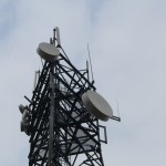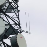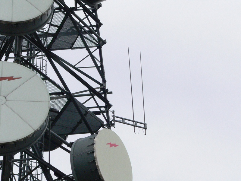 Tak wyglądają anteny przemienników. Dwie anteny nadawcze obok siebie a nad nimi anteny odbiorcze.