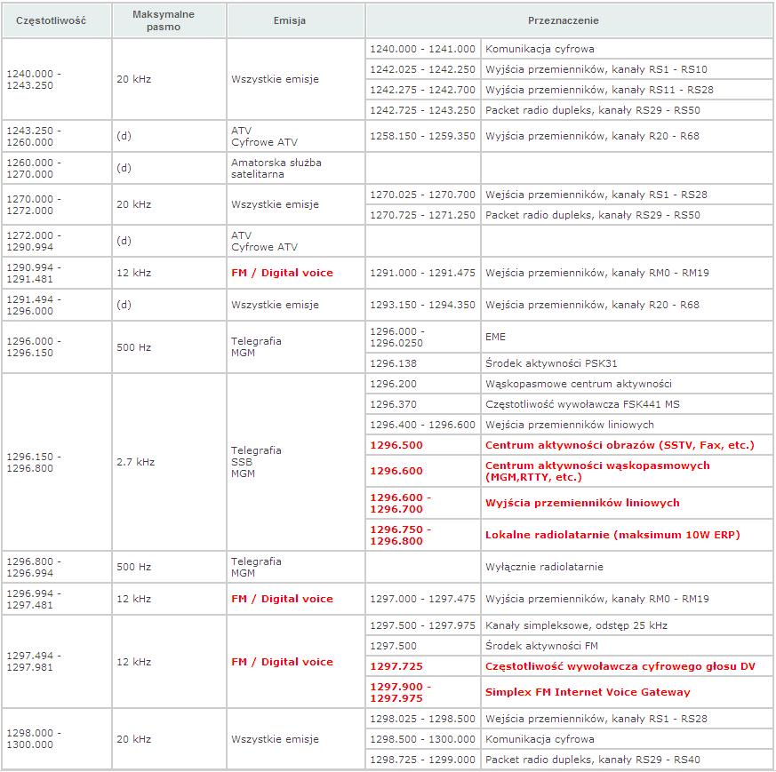 Bandplan 1300 MHz