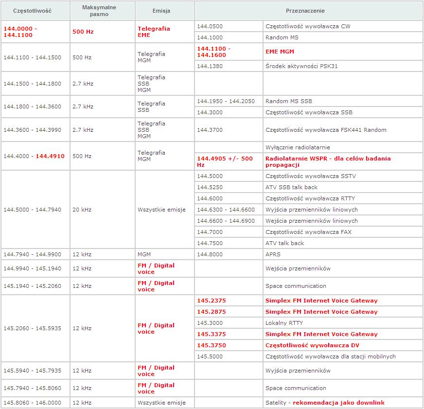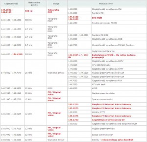 Zamieszczone są tu tylko podstawowe, najczęściej używane pasma amatorskie.