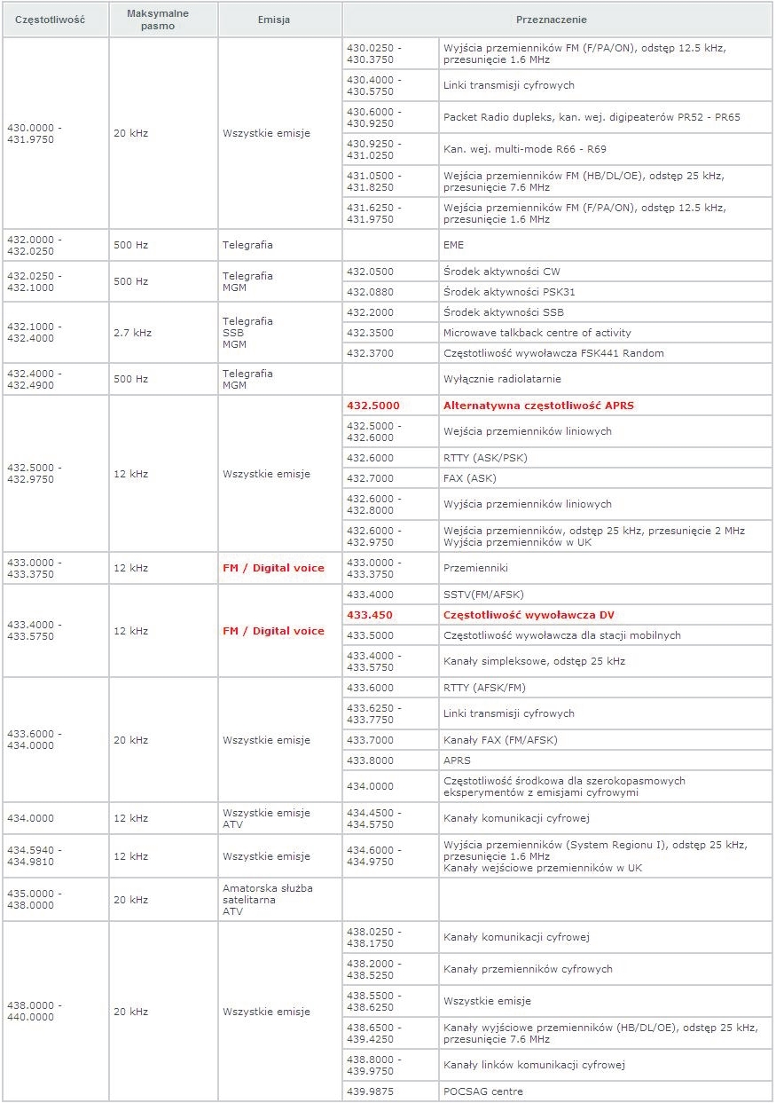 Bandplan 432 MHz