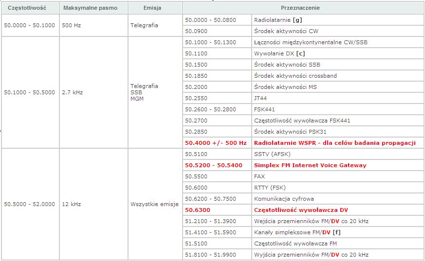 Bandplan 50 MHz