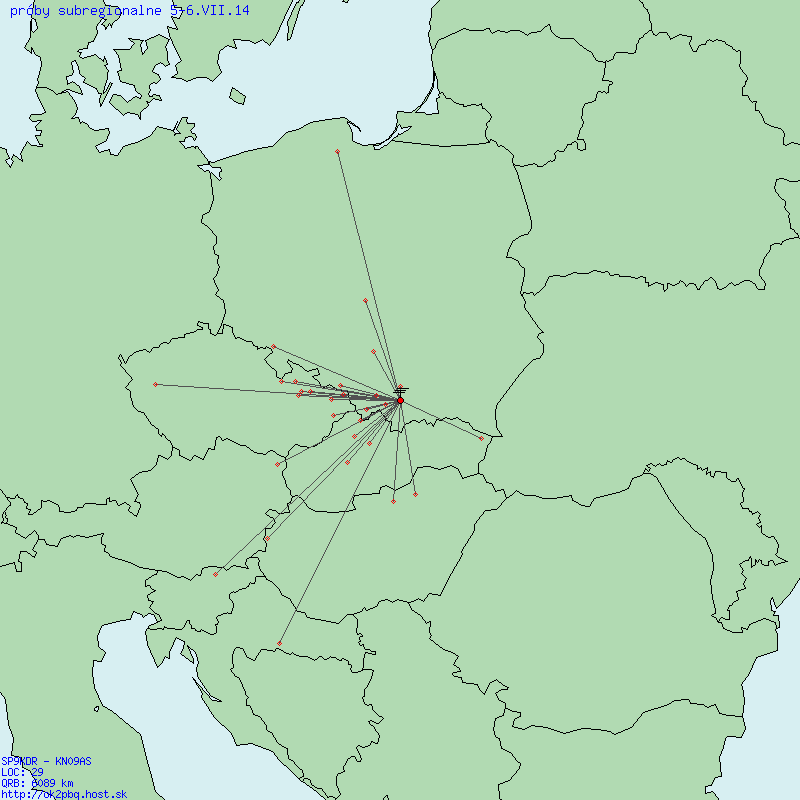on lipiec 6th, 2014 at 17:51W dniu wczorajszym wzięliśmy udział w III próbach subregionalnych na UKF – dwuosobowa ekipa w składzie Krzysiek SP9NSU i Paweł SQ9NFQ. Pracowaliśmy niestety dość krótko bo nieco ponad 3 godziny z bazówki na polanie Kudłacze (KN09AS) używając Yaesu FT857 (50W) i 10el Yagi na 144MHz. Mimo początkowych problemów związanych z systemem antenowym udało nam się zrobić 29 QSO ze stacjami SP, OM, OK, OE, HA, S5 i 9A. W sumie 6089 km z najdalszą łącznością z 9A – ODX 543 km. Cóż – może skromnie, ale następnym razem napewno będzie lepiej…